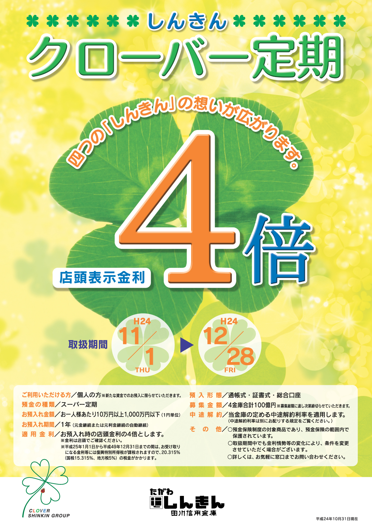 - 2012.11.01 クローバー定期キャンペーンを平成24年12月28日(金)まで実施致します